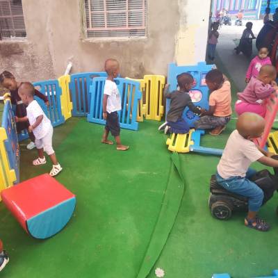 Safe & educational age-appropriate playgrounds. Each age is age appropriate are situated separately to each other, inside the premises and outside school playground.
